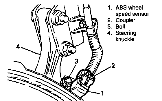REMOVALNOTE: Front wheel speed sensor is serviceable only as an assembly.