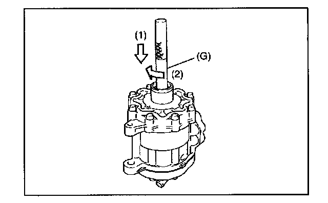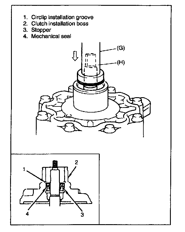 3. Using special tool (G), press it slowly by hand until mechanical seal contacts the stopper of clutch installation boss.