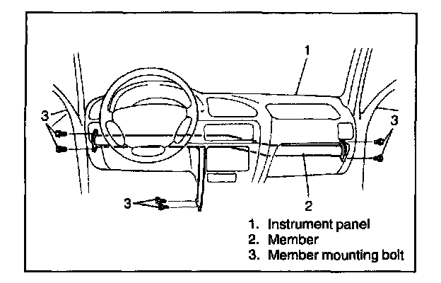 9. Remove instrument panel together with instrument panel member.