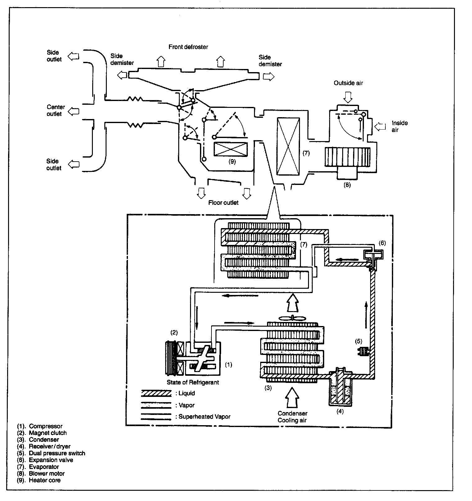 Major Components And Refrigerant Flow Of Air Conditioning System: