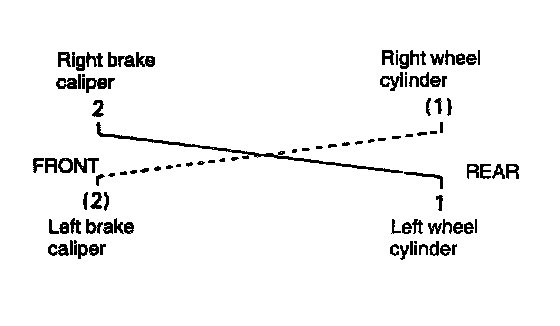 NOTE: Perform bleeding operation starting with wheel cylinder farthest from master cylinder and then at front caliper of the same brake line. Do the same on the other brake line.