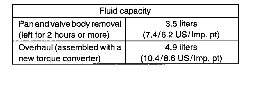 ^ Lesser volume than following table may fill up transmission, in case that oil pan only is removed leaving valve body as it is and reinstalled soon.