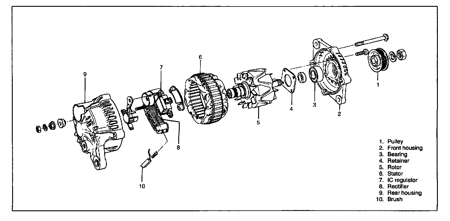 8. Remove stator from rear housing by removing four screws and battery terminal nut.