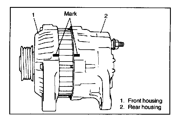 1. For easier reinstallation, provide match marks on both front and rear housing as shown before separating them.