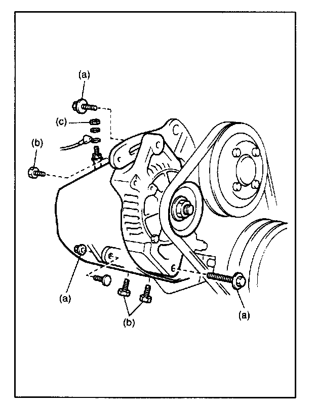 5. Remove generator mounting bolts and nut, and then remove generator.