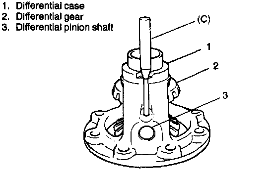 2. Drive in side pinion shaft pin from right side till it is flush with diff. case surface.