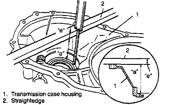 1. With gasket removed, measure dimension "a" of transmission case housing (from mating surface to bearing bore bottom) by using straightedge and vernier caliper.