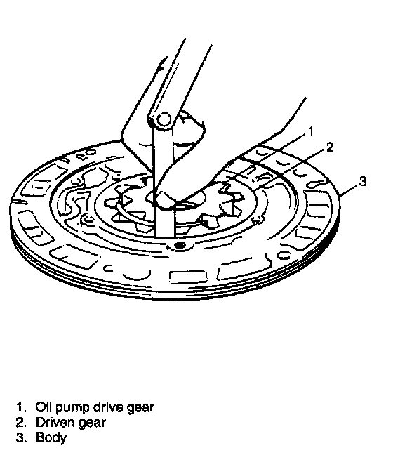 2. Install driven gear and drive gear to pump body after applying fluid to gears.