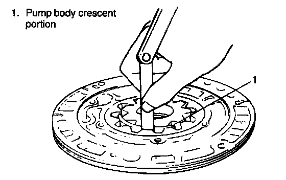 3. Check tip clearance of both drive and driven gears. Measure radial clearance between gear tooth and crescent. If clearance exceeds its limit, replace gear.