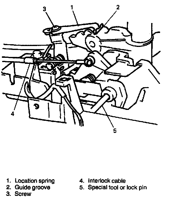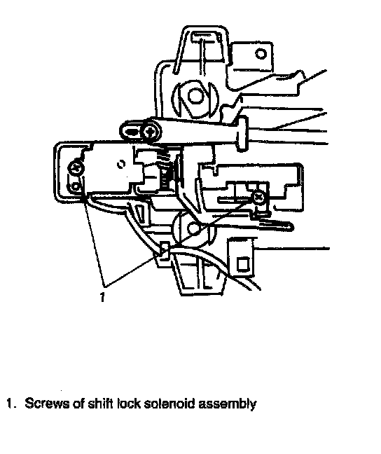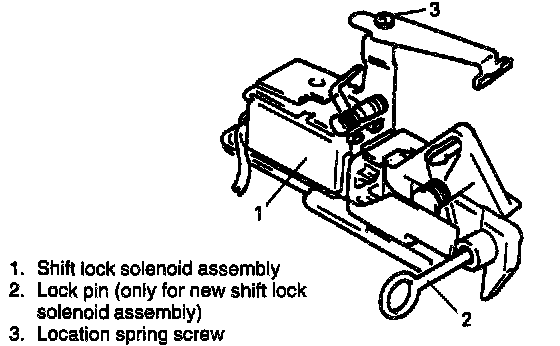 NOTE: New shift lock solenoid assembly is supplied with held key release cam at key interlock cable connecting position with lock pin. Do not remove lock pin in this step.