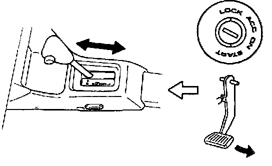 - With manual release plate moved in arrow direction and ignition key turned to "ACC" position, selector lever can be shifted from "P" range position to any other range.