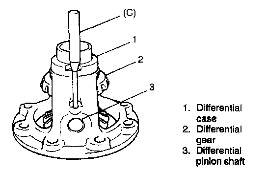 5. Using special tool and hammer, drive out differential side pinion shaft pin and then disassemble component parts.