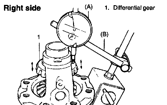 1. Assemble differential gear and measure thrust play of differential gear as follows.