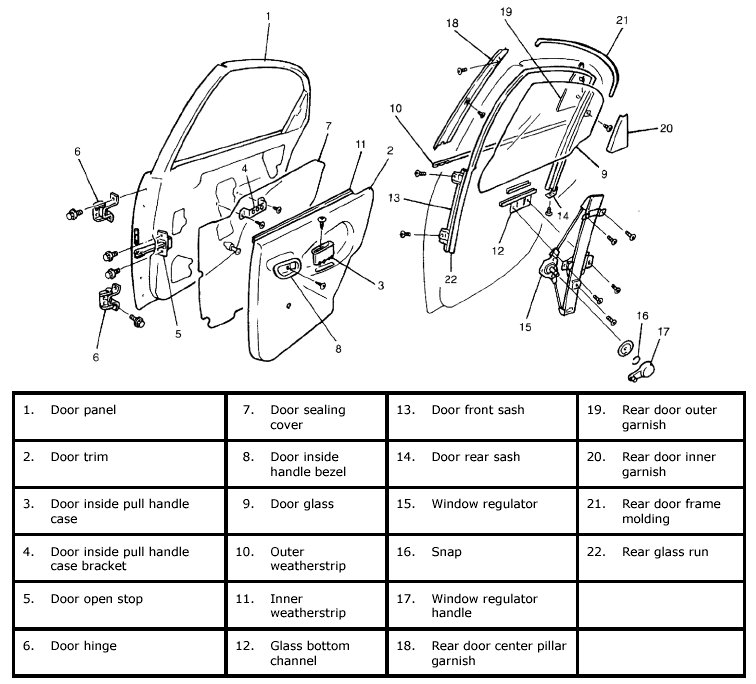 Rear Door Window Regulator Removal and InstallationRear Door Glass Components: