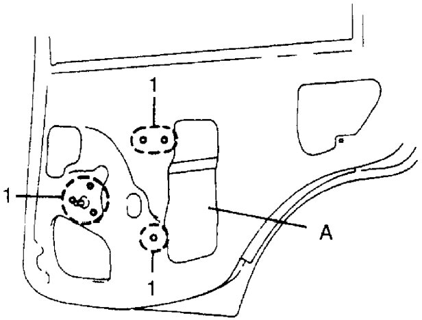 2. Remove door window regulator attaching screws (1) (six pcs.).