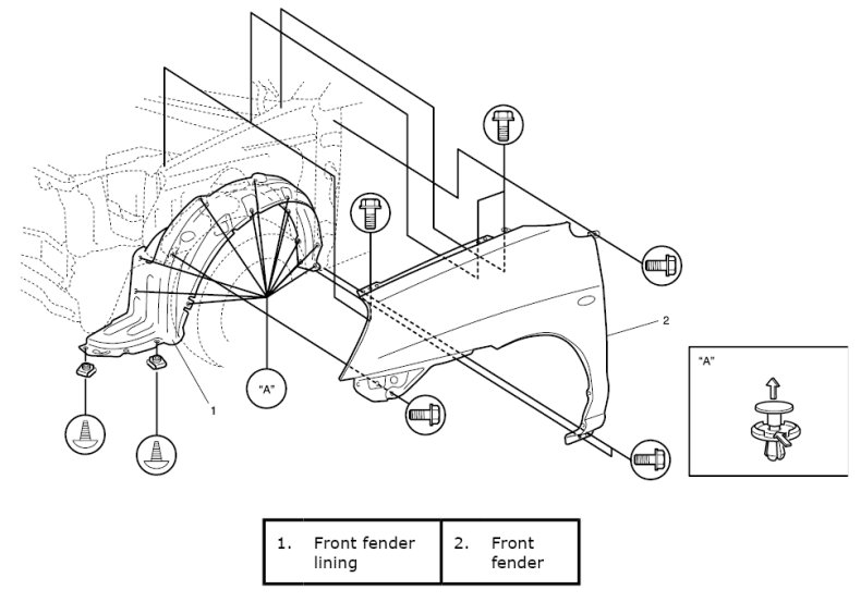 Front Fender Removal and InstallationFront Fender Components:
