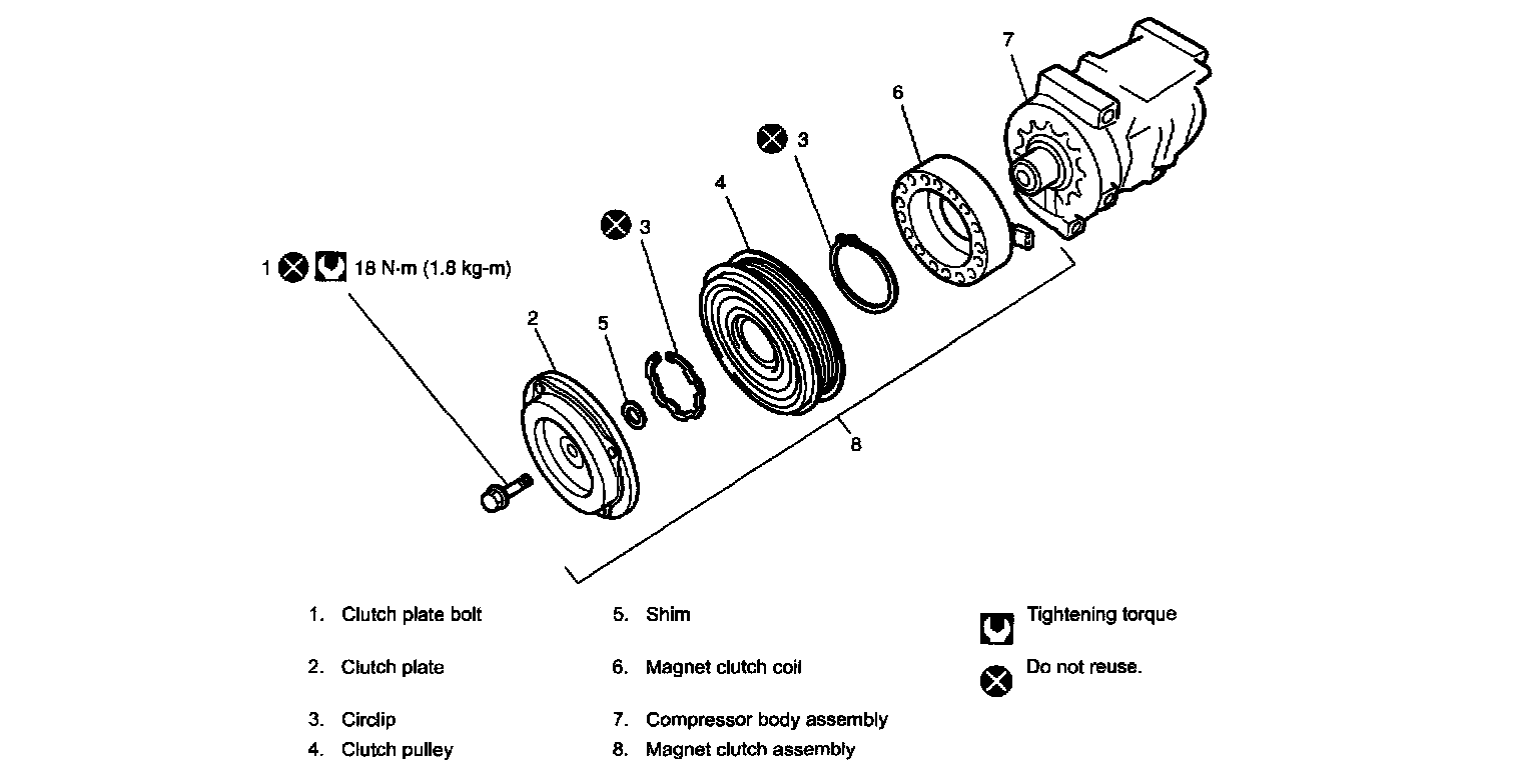 Never disassemble compressor body assembly. Performing any of these prohibited services will affect original performance of A/C system.