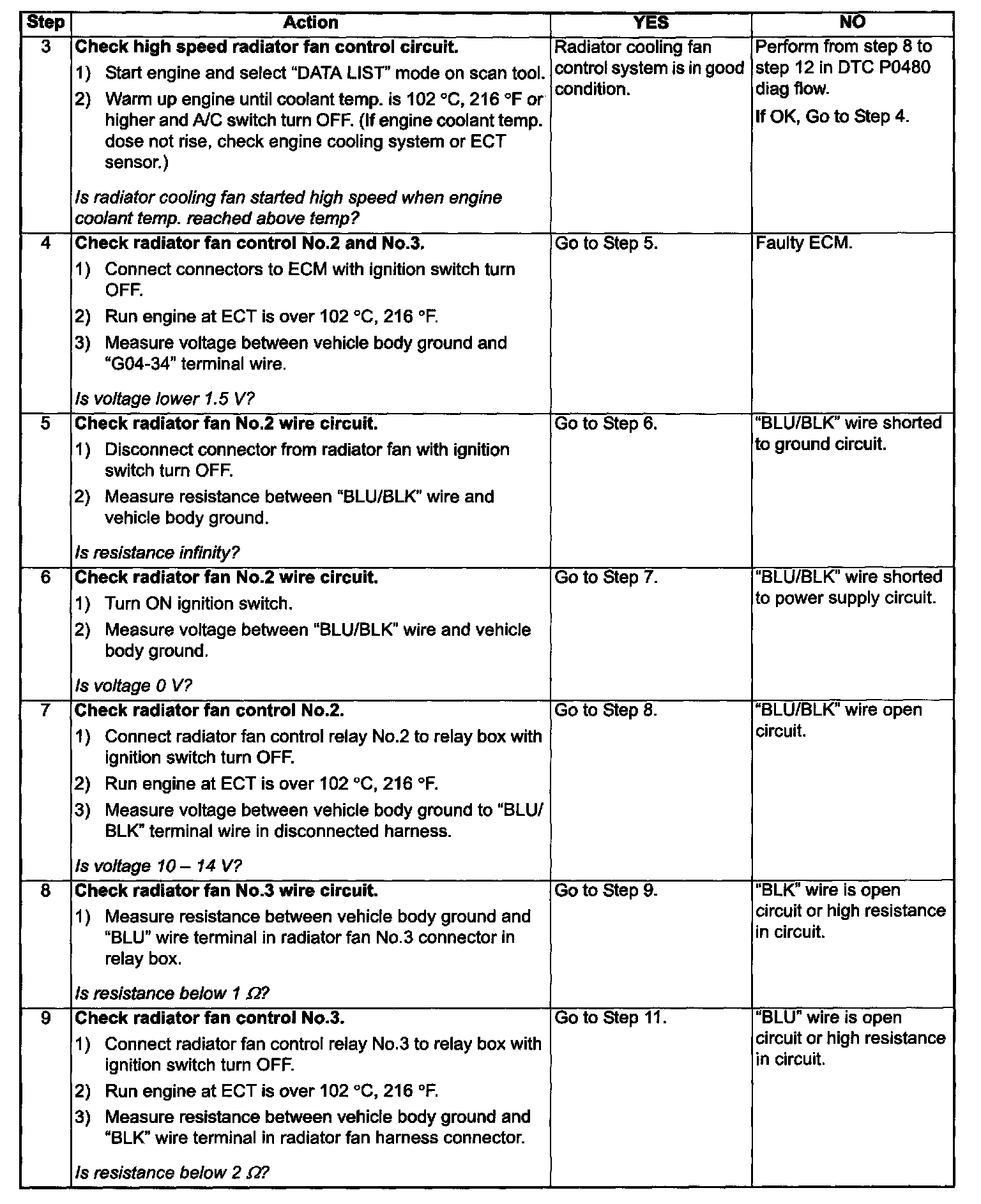 Radiator Fan Control System Check: