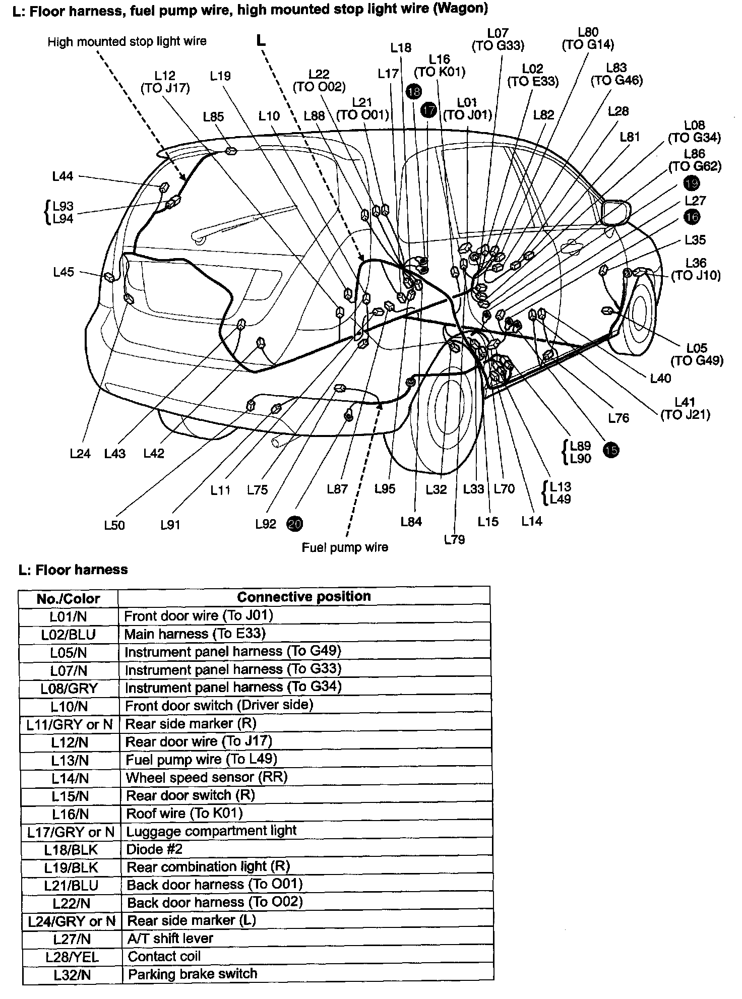L: Floor Harness, Fuel Pump Wire, High Mounted Stop Light Wire (Wagon) - Connective Position: