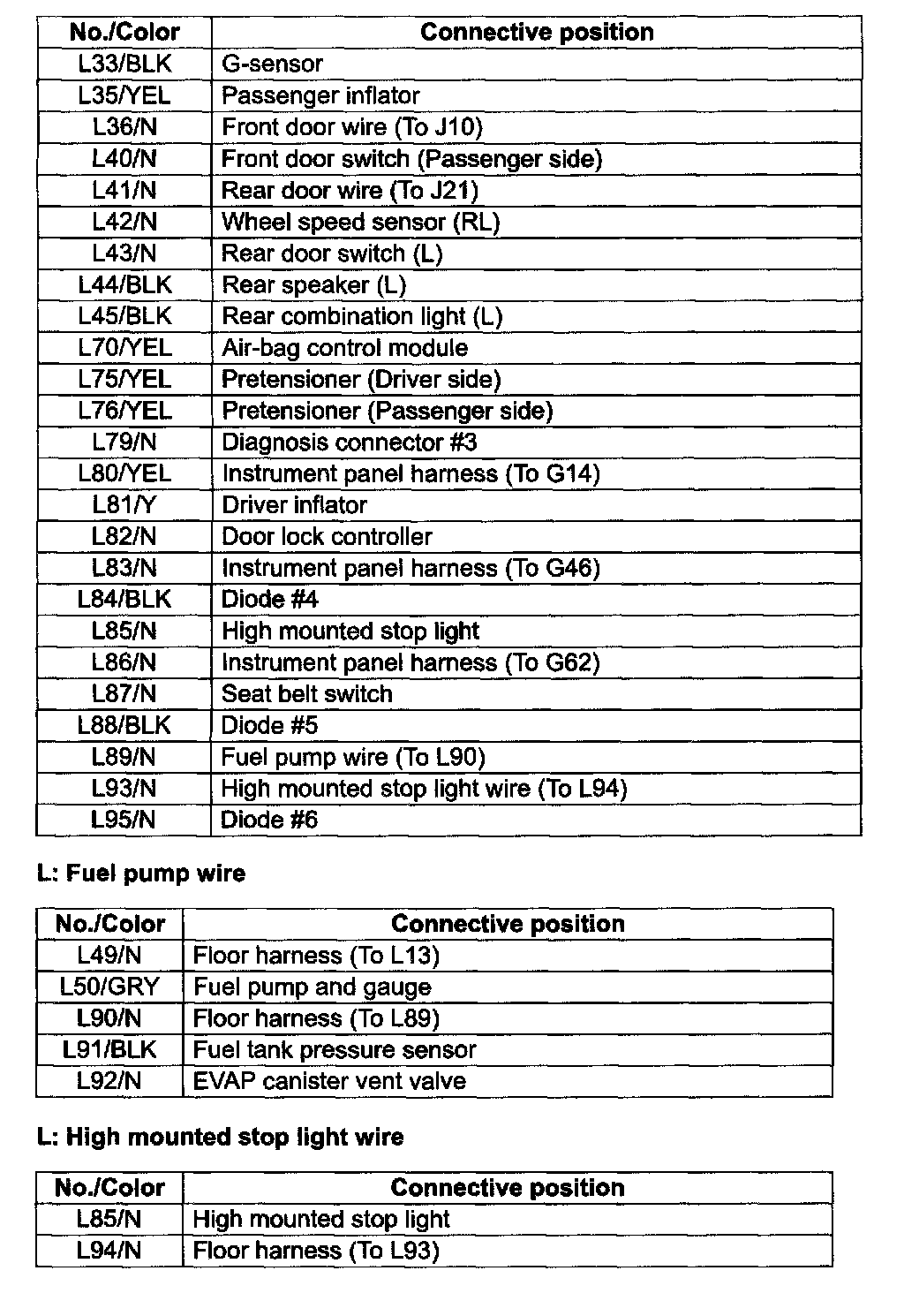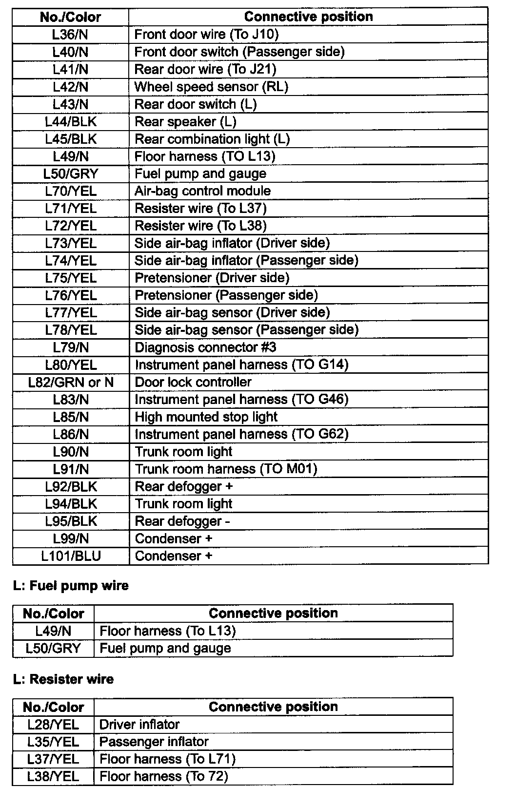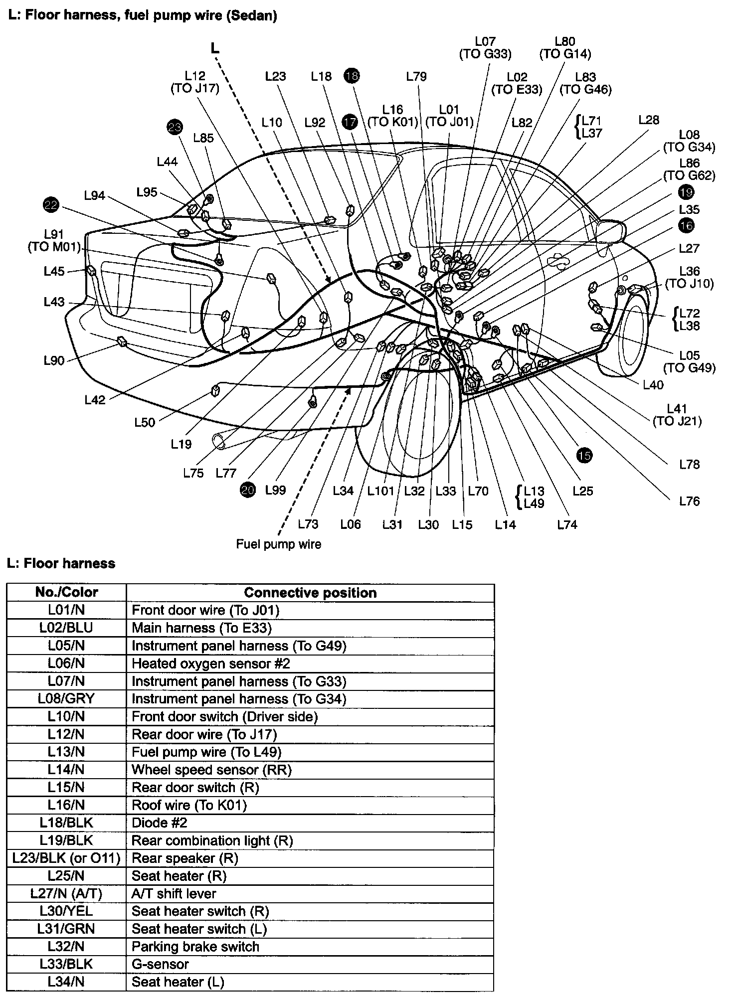 L: Floor Harness, Fuel Pump (sedan) - Connective Position (Contd):