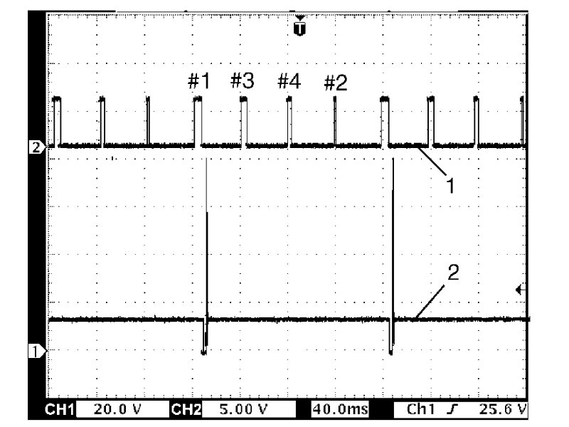 Fuel injector signal (1) at engine idling