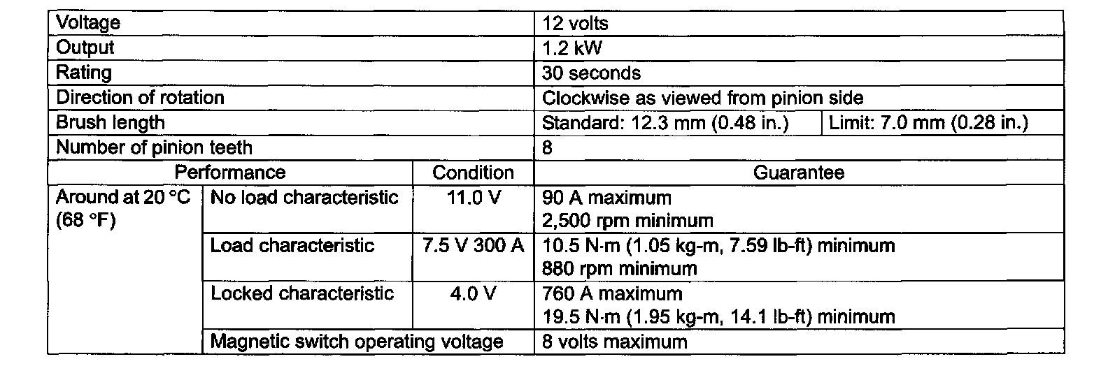 Cranking System Specifications