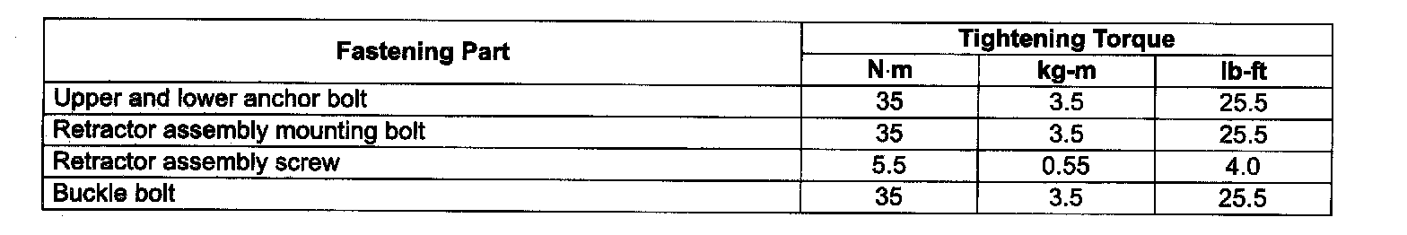 Tightening Torque Specification: