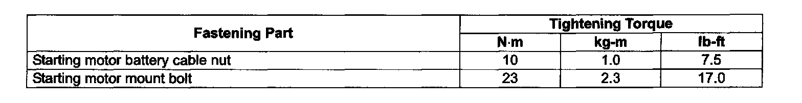 Starting motor varies depending on specifications, etc. Therefore, be sure to check model and specification of the vehicle being serviced before replacing parts.