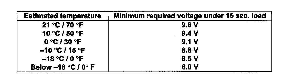 NOTE: Temperature of battery will affect minimum voltage required to pass load test.