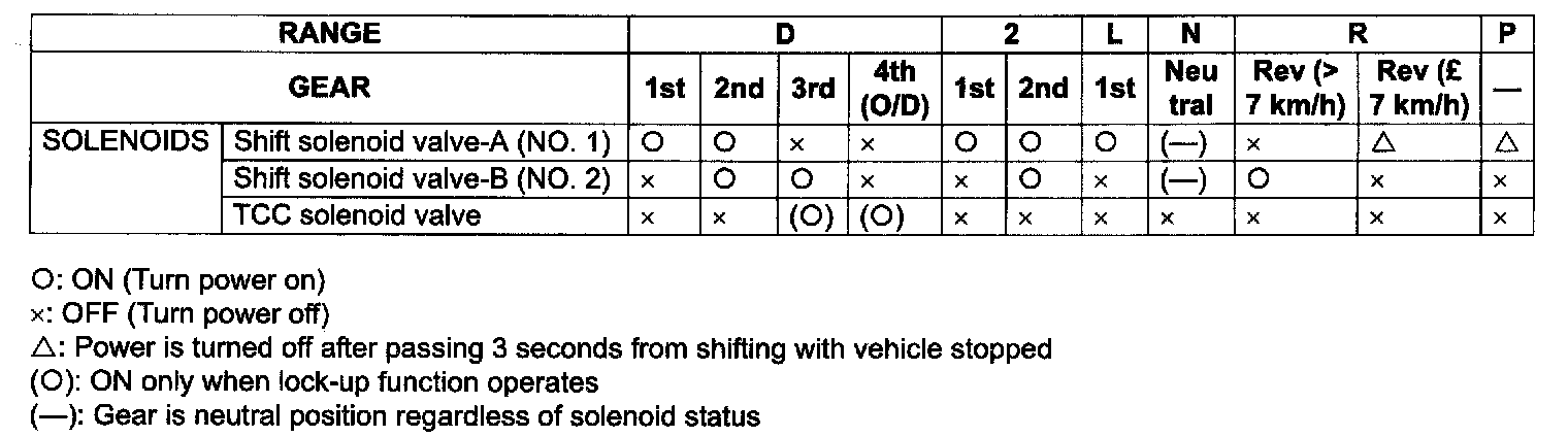 Operation of Shift Solenoid Valves and TCC Solenoid Valve