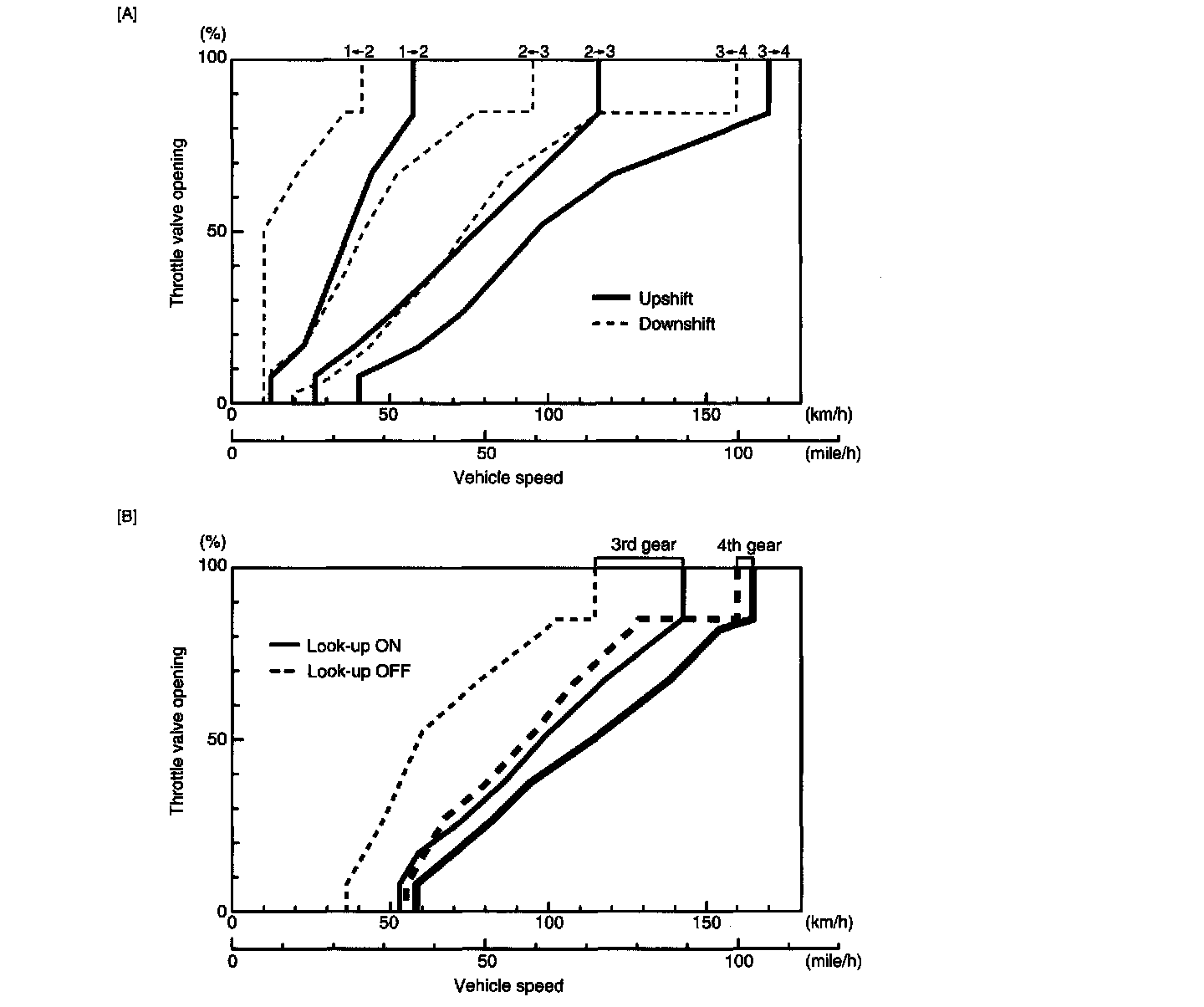 Gear shift diagram [A] and TCC lock-up diagram [B]