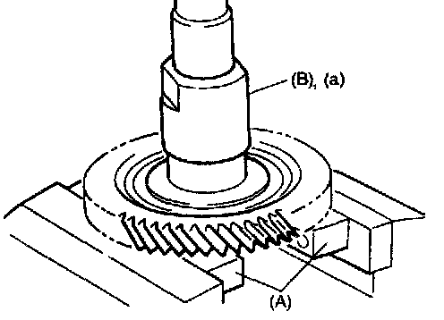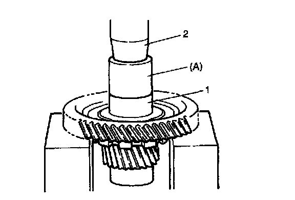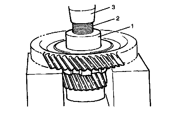 1. Press differential drive pinion (2) to counter driven gear (1), using hydraulic press (3).