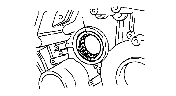 7. Place counter shaft LH thrust roller bearing (1) and race to transaxle case.