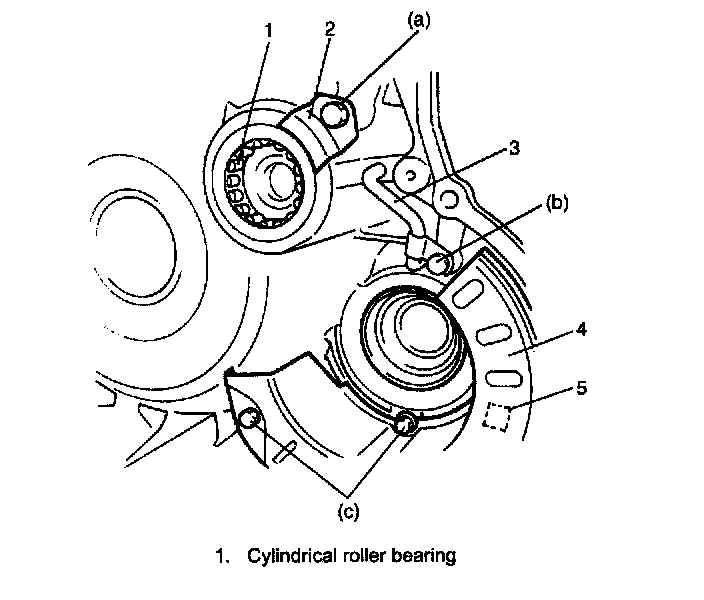 Cylindrical roller bearing retainer bolt (a): 13 Nm (1.3 kgf-m, 9.5 ft. lbs.)