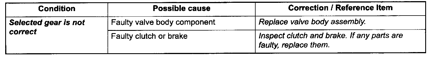 Manual Road TestThis test checks the gears being used in "L", "2" or "D" range when driven with unoperated gear shift control system.