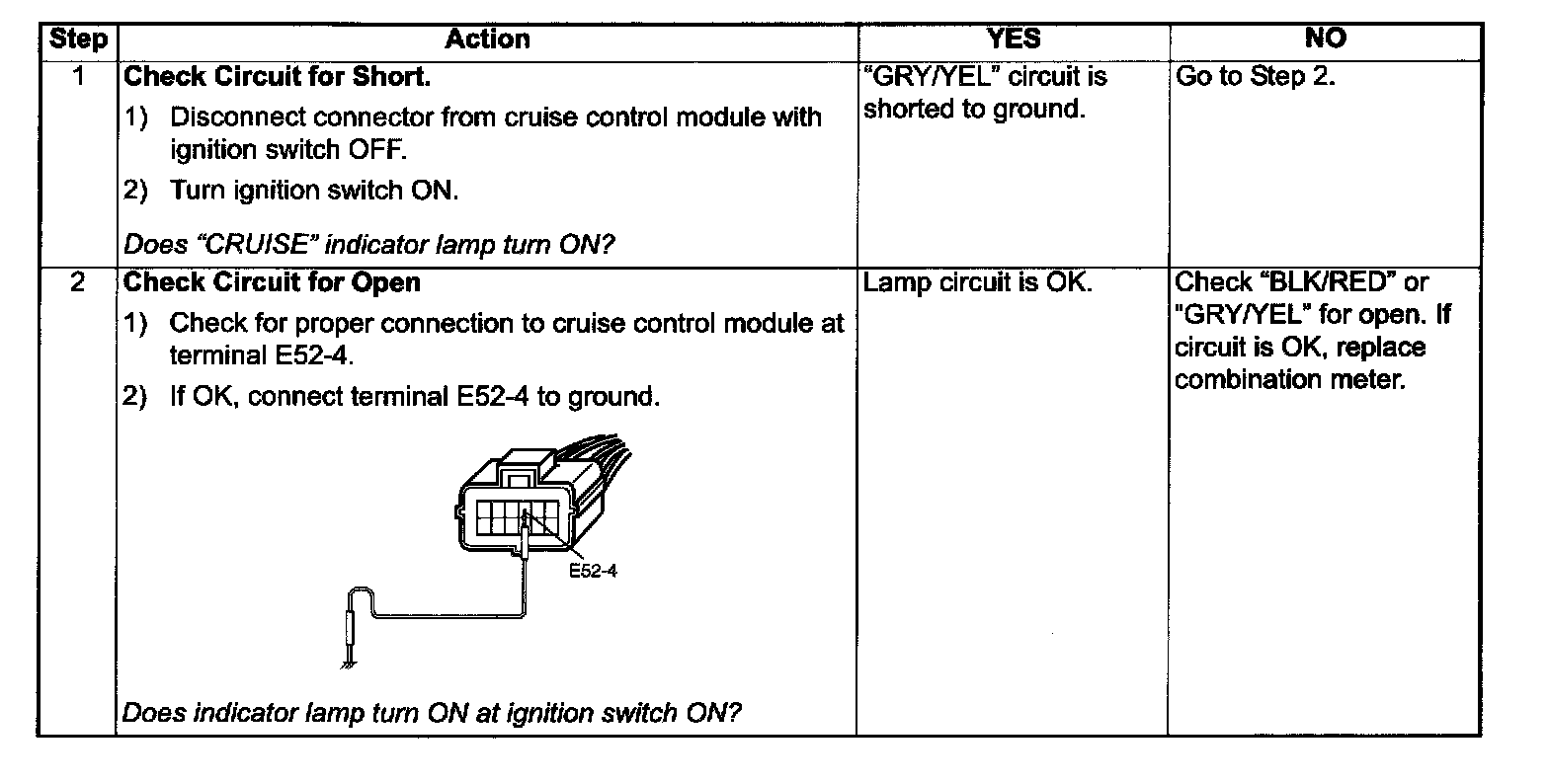 Cruise Indicator Lamp Circuit Check