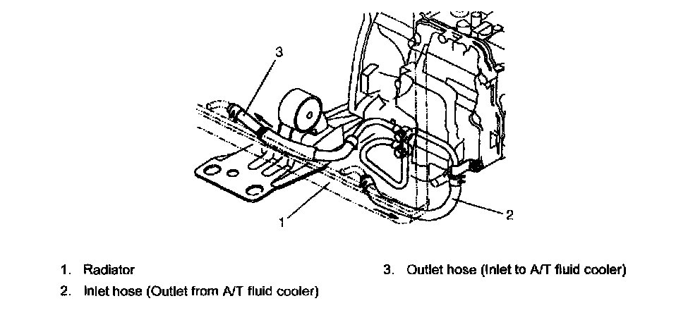 A/T Fluid Cooler Hoses ReplacementThe rubber hoses for the A/T fluid cooler should be replaced at specified interval. When replacing them, be sure to note the following.