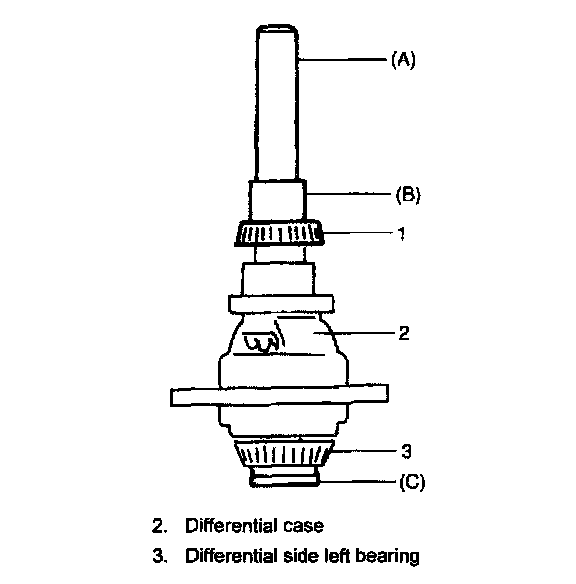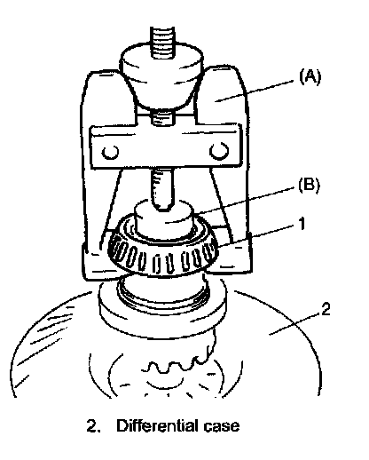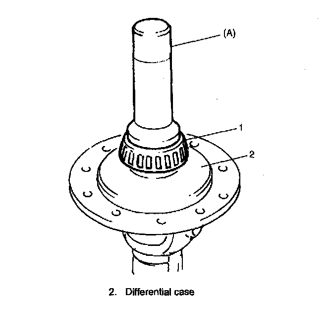 5. Drive out differential side pinion shaft (2) and then disassemble components parts.