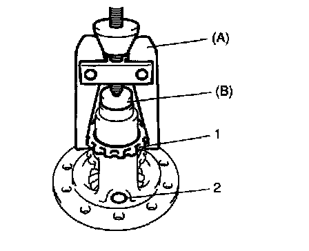 5. Press-fit new sensor rotor (1) with groove (2) side upward as shown by using special tools and copper hammer.