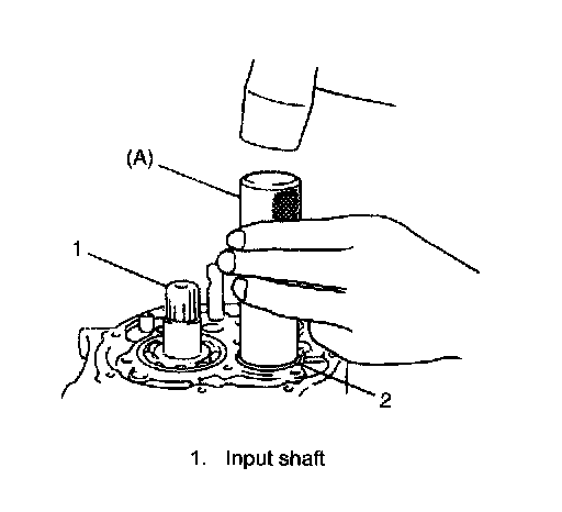 6. Install needle bearing to input shaft, apply oil then install input shaft 5th gear (2).