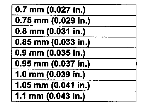 Available countershaft 5th gear shim thickness