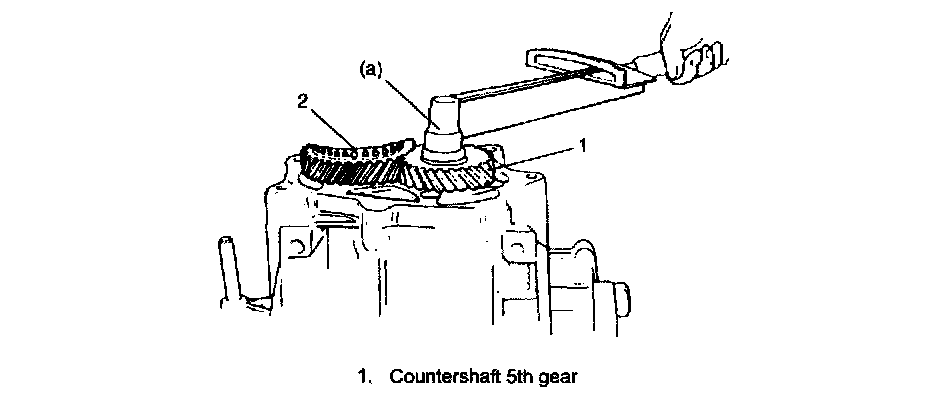 Reassembly1. To seat countershaft left bearing cup (2) to bearing cone, tap cup by using special tool and plastic hammer.