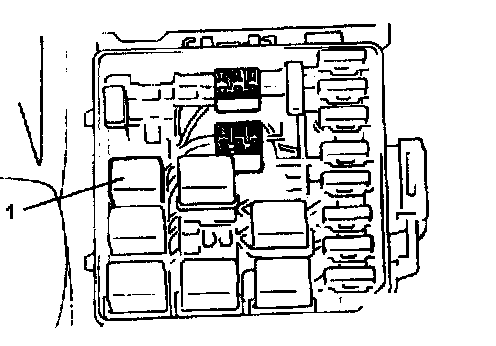1. Disconnect negative cable at battery.2. Remove main relay (1) from relay box.
