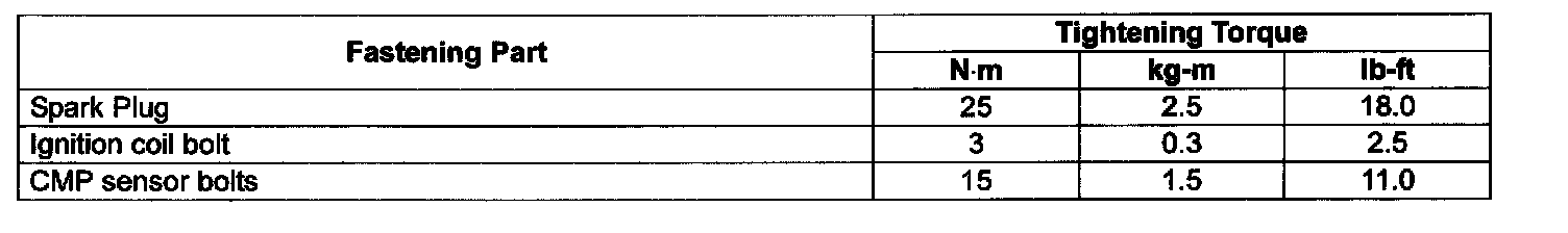 Tightening Torque Specifications: