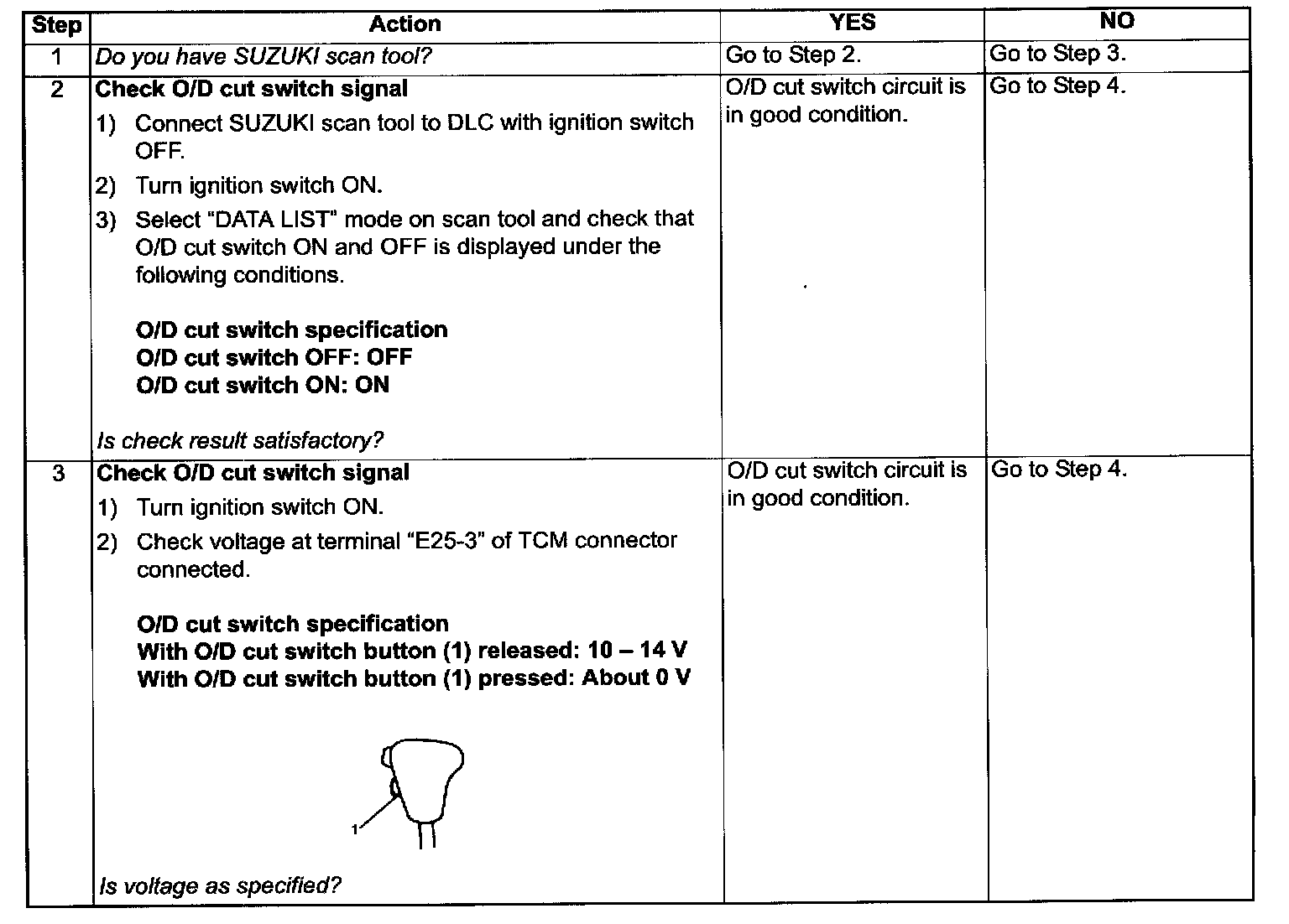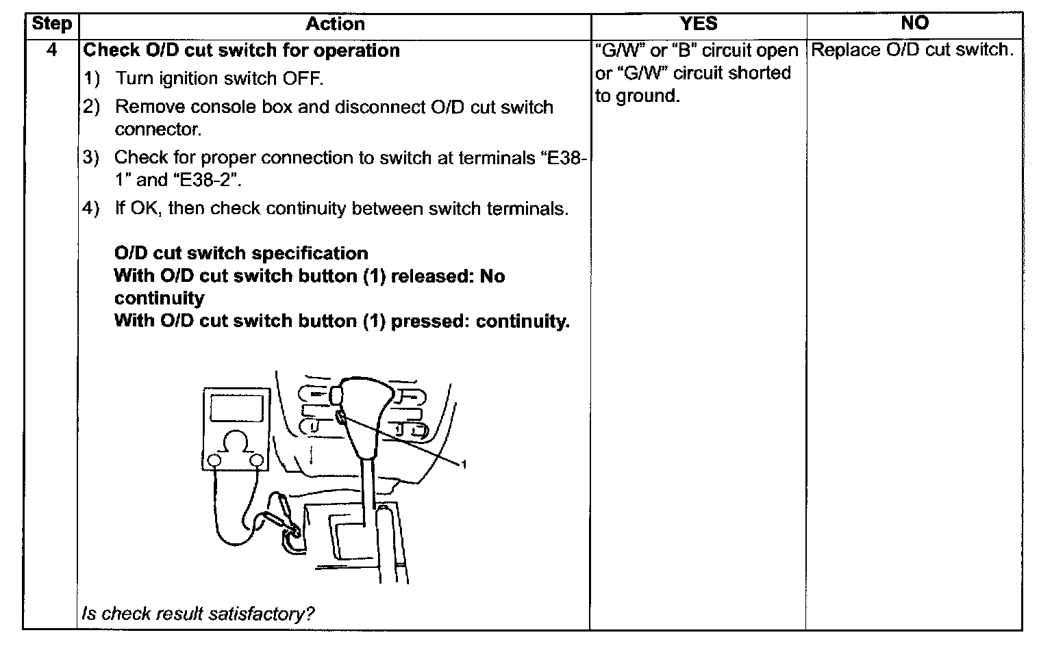 Over-Drive (O/D) Cut Switch Circuit Check