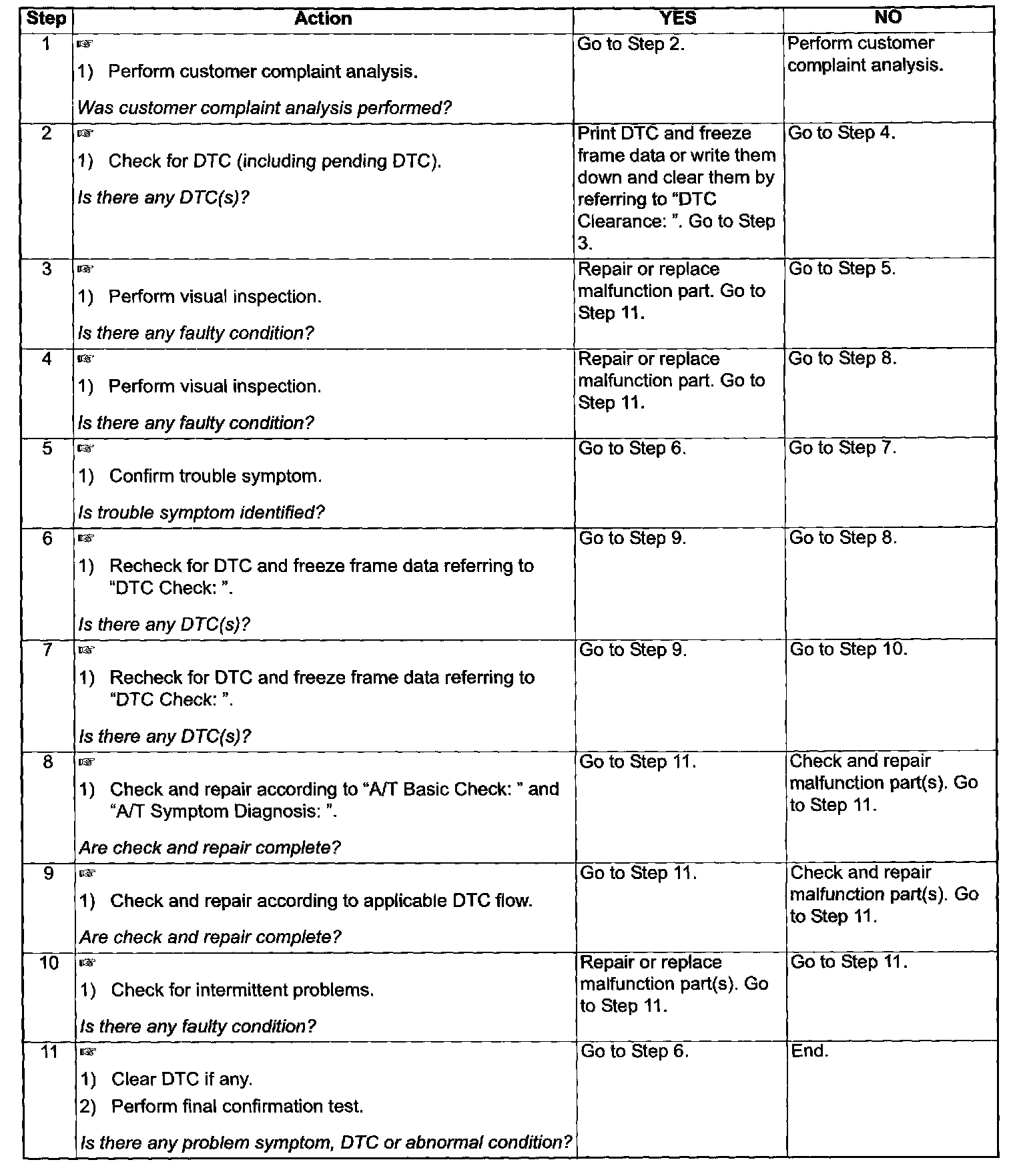 Step 8: Automatic Transmission Basic Check and A/T Symptom Diagnosis Flow