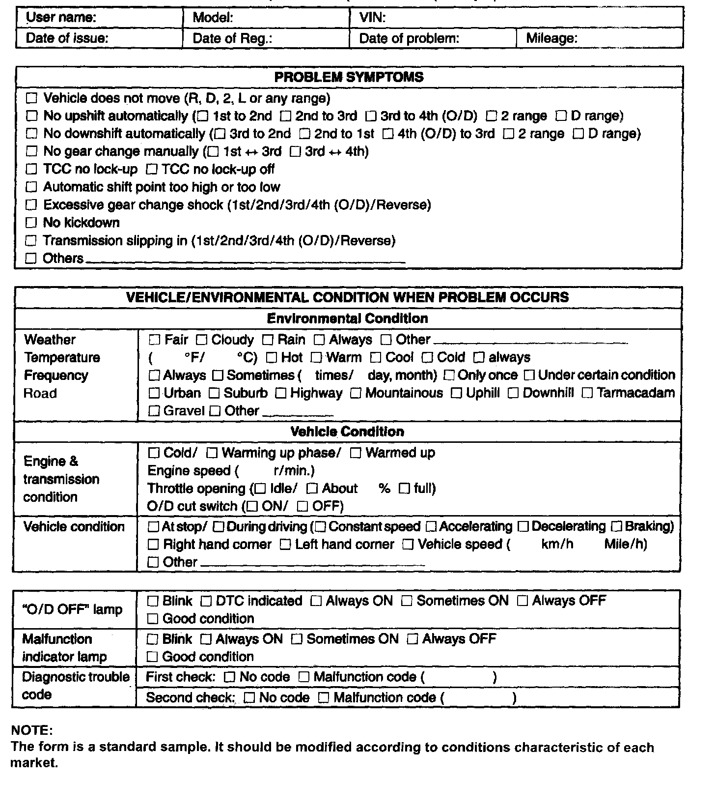 For this purpose, use of such an inspection form will facilitate collecting information to the point required for proper analysis and diagnosis.