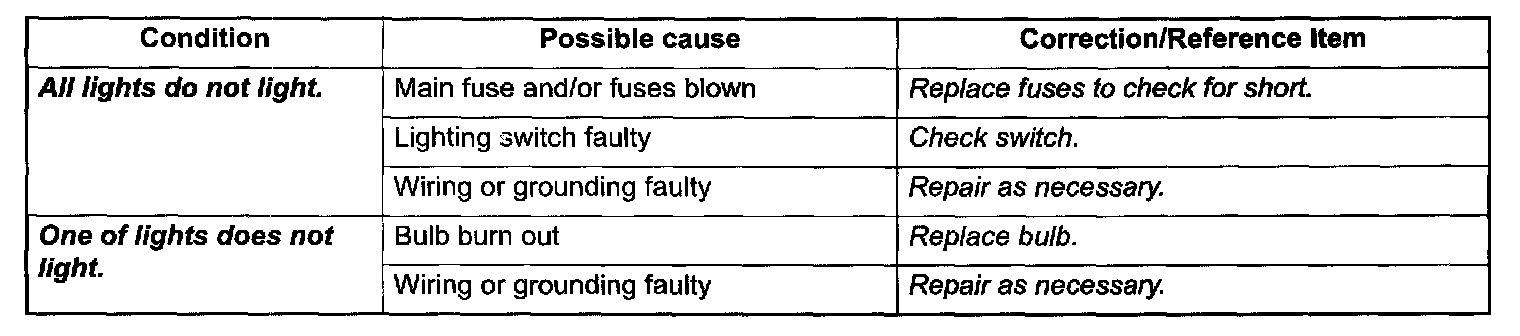 Clearance, Tail And Licence Lights Symptom Diagnosis: