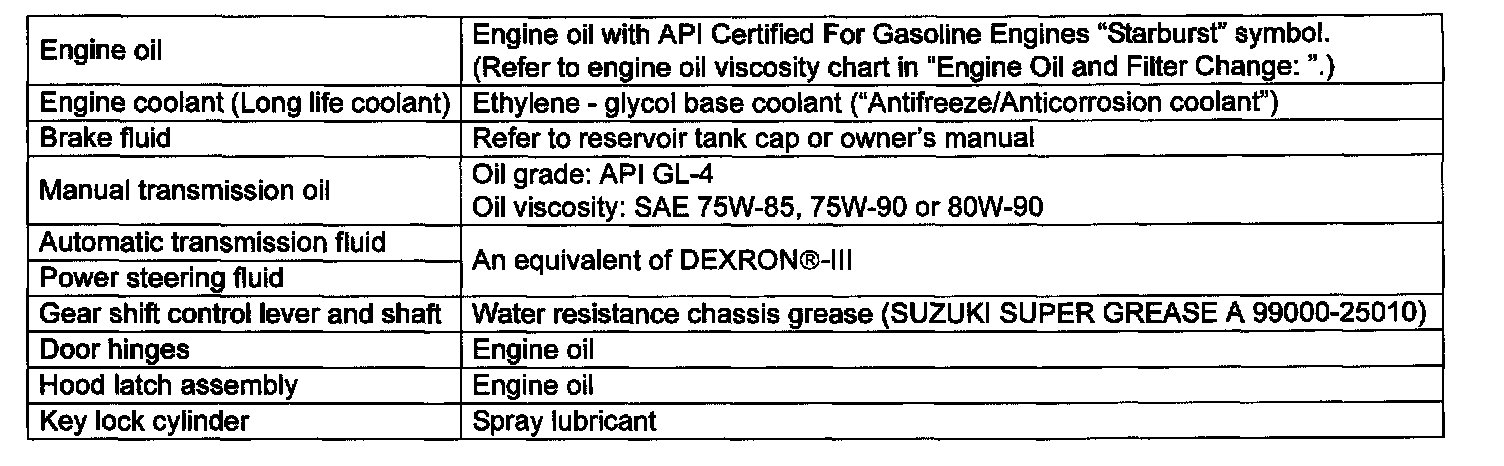 Recommended Fluids And Lubricants: