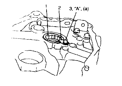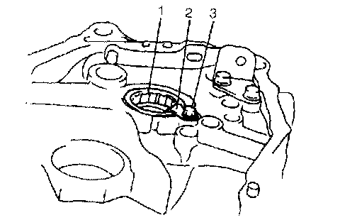 5. Install input R bearing (1) stopper plate (2) and bolt (3) applied with thread lock cement.